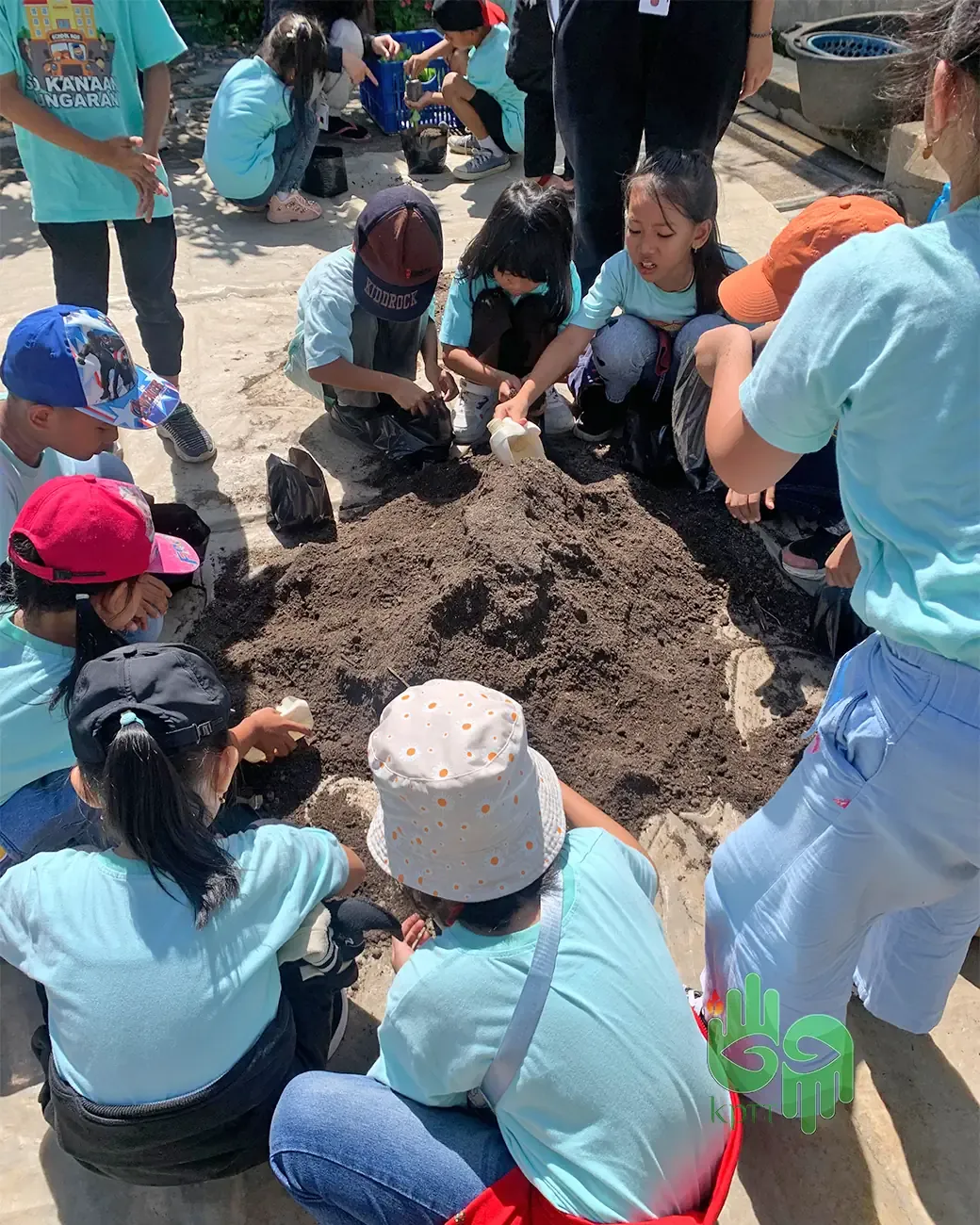 Sebanyak 102 teman-teman junior dari SD Kanaan Ungaran berkunjung ke KPTT Salatiga. Kunjungan ini tidak hanya menjadi fieldtrip biasa, namun juga sebuah pengalaman belajar yang seru dan interaktif bagi mereka. Teman-teman “keluar” dari ruang kelas dan terjun langsung ke alam terbuka. Tidak hanya belajar teori, mereka juga mempraktikkan teknik-teknik pertanian yang dirancang untuk memperkenalkan terhadap dunia pertanian. Salah satunya adalah teknik overplanting yaitu memindahkan bibit ke media tanam yang lebih besar. Keterlibatan langsung ini membuat kegiatan bertani yang terkesan sulit menjadi aktivitas mudah dan menyenangkan. Setiap siswa belajar bagaimana cara mengubur akar dengan hati-hati, menyiram bibit, supaya bisa tumbuh optimal.